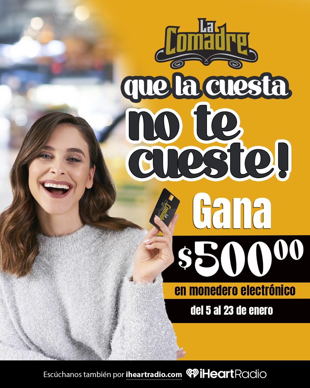 Del 5 al 23 de enero, únete al mitote y sintoniza a nuestros locutores porque puedes ganarte $500 pesitos en monedero electrónico.